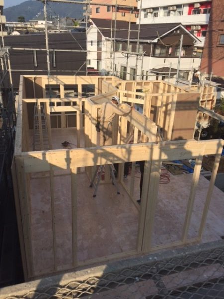 雨でやや出遅れた佐世保S邸も棟上げです。狭い敷地に高低差があり、RC造車庫も作り、小さいながら密度の濃い、こだわり住宅です。平田のコーディネーターとしての腕が生かされます。奥様も研究熱心で、面白い作品になりそうです。こういう案件は商業ベースの家づくりをやってる会社には無理です。会社の家づくりのルールにお客様が合せなければいけないわけで、感性が強い人、面白いもの、オンリーワンを希望する人は我々を評価くださいます。アーツ工房の現場を進める手腕にもオーナーたちから強い信頼をいただいてます。