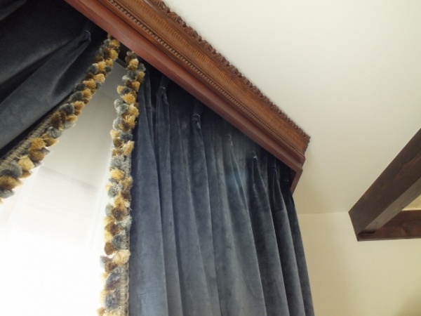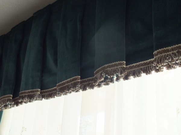 先日3件のカーテン取付が終わりました。 海外在庫の生地到着を待っての製作でしたので、オーナーには長くお待たせして大変ご迷惑をおかけしましたが、とても素晴らしい出来栄えでフリンジの色一つにもこだわって選んでいただいた甲斐がありました。