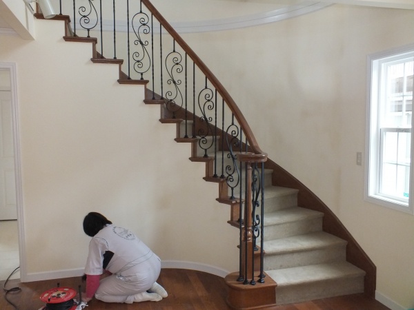 螺旋階段の手すりがつき、後はアイアンの手すり子を取り付けるのみです。
