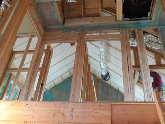 小月S邸は断熱材が入りました。床下、外壁、天井、タルキ全て充填するにはあと少しかかりそうです。高断熱高気密は重要なことですが、材料だけでそれを語り、決めるのは間違いです。暮らし方、プラン、方位、場所、工法、施工精度等総合的な見識の元「快適な暮らし」を追求すべきで断熱性の数値が高い材料を選ぶことだけではありません。特に九州山口においては、夏の暑さをいかにに効率よく快適に過ごすかをテーマにすべきです。「遮熱」という概念が大切のようです。S邸はセントラルエアコンとペアガラス、断熱材を上手に生かした暮らしを提案しています。どのおたくも快適性については絶賛してくださり自信を持ってます。「長生きするよ。」「最高です。」「部屋の空気がきれい。」・・・・ありがたい声です。