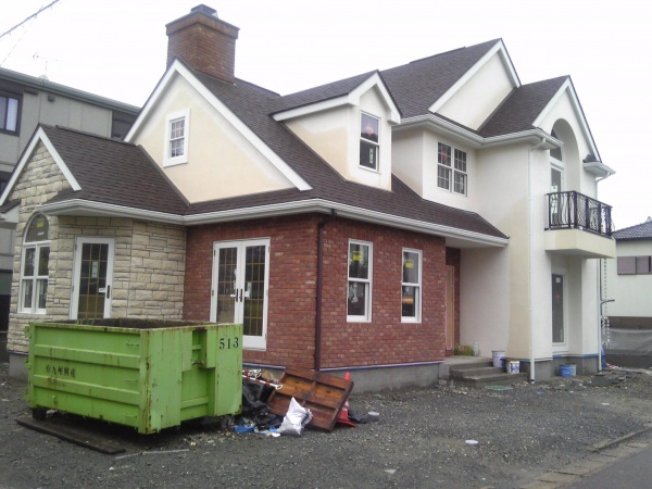 中央区U邸の足場が取れました。オーナープロデュースのこだわりの家です。今玄関ドアの色を検討されてます。