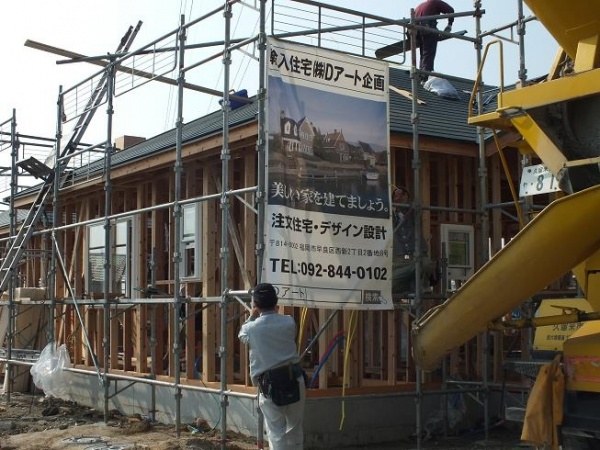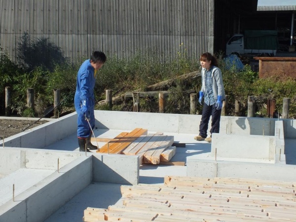 今日は大木町3棟の中間検査です。横では3棟の建て方が始まりました。大引や根太に防蟻材を塗布してました。検査はいつもながら役所仕事でくだらない、どうでもいいことを指摘して変更の書類を出すようになりました。役所への支払いが10円不足してると80円の封書でなんども請求してくることが仕事だと思っている人たちの検査は、世間の感覚と大きなずれがあります。許可になった申請図より、わずかですがより安全により広く配置したので民間ではほめていただけるところなのですが・・・・・・。
