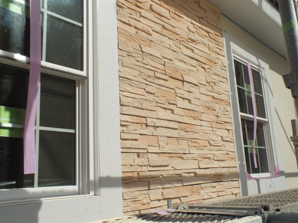 オーナーのお父さんが外壁の石を貼り始めていただき、これまたいい感じです。今のところカラーコーディネートは内外とも成功です。