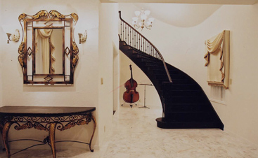 螺旋階段の手すりがつき、後はアイアンの手すり子を取り付けるのみです。