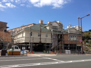10月1日、台風一過の秋晴れです。午前中、恒例の十日恵比寿に平田、中村と3人でお参りした後、下関に走りました。Y医院は養生シートが台風のため外されていたので、外観が写せました。先生と、役所への届け書類、エアコン等の打ち合わせの後、国交省のお役人と薬局の車侵入場所の打ち合わせです。フェンスをとり、歩道を切り下げ、アスファルトを厚くして、埋設の電気、ガス、水道、排水を傷つけないように打ち合わせをして、測量し、それを図面化して、書類を何枚もつくり申請して、許可をもらい、工事をし検査を受け、やっと完了です。まさに無駄なことを民間にさせて、物事の本質より、役人が食える仕事の流れを作ってるとしか思えません。こんな調子で仕事してると、日本は滅びます。