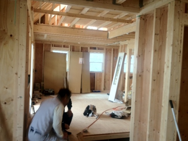 工事が始まると、オーナーは図面と違い、初めての自分の家を感覚でとらえます。そして喜んだり戸惑ったりされます。地縄や基礎では、小さい、狭いといいながら不安な顔になり、雨を心配され、棟があがると思ったより大きいとか高いとか喜ばれ、それから手作業に入るので、遅遅として工事が進まなく感じられるようです。断熱や通気層や防水紙や性能工事はおもしろくありませんが大事な工事です。造作になってくると、迷われることが多くなります。パントリーやクローゼットの形、タナ、パイプ・・・・・色や仕上げになると迷いから悩みになる方もいらっしゃいます。追い詰められたような感じになると楽しさやうれしさがなくなり、いい家になりません。重箱の隅をつつくように、まずいところ探しや、検査官気取りで職人を追い詰める方や、施主を表に出し、変更続きで工事が進められなかったり、発注が無駄になったりすることもあります。いろんな経験を踏んでこの年になり、オーナーさんに何を説明し何を語らなければいけないか少しわかってきました。場合によっては強く抗議することも大事です。施工中たのしく家づくりをしていただけるかどうかも我々の大事な仕事です。信頼しあい、気さくに意見を言い合える関係が何よりです。「お客様に深く入り込むな。」という住宅メーカーのお偉いさんによく会いますが、その会社いい家を作っていません。いい家を作るにはオーナーの意見を聞き、自分の意見や経験を伝え尊重しあうことが大事です。そしてうまく現場が進まない理由をオーナーのせいにする現場は、全ての家づくりの工程に問題があります。職人をさりげなく気遣って下さるオーナーは最高です。