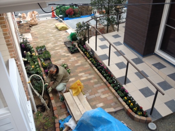 大宰府Sの高齢者住宅の引き渡しでした。20日内覧会です。興味をお持ちのご高齢者の方はぜひ説明を聞かれたらと思います。あさってで外構も終わり、素敵な街になります。地域を巻き込んだ活動は確かな形として、育まれていくでしょう。草、花の植樹が行われていますが、手がかじかんで大変でしょう。水の量、養土、・・・枯らさないように気も使う季節です。