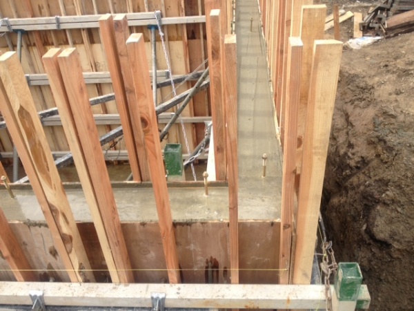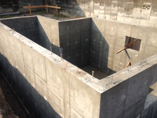 西区D邸は天気次第ですがそろそろ型枠を外して、防水をして埋め戻します。雨が多くてやや遅れ気味です。