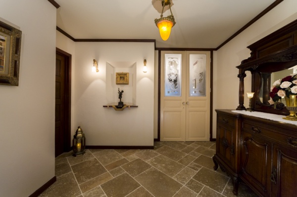 まず手前に網戸ドアを開いて、それからインスイング(内開き)の玄関ドアを開けるという西部劇にも出てきそうなアメリカらしいデザインです。