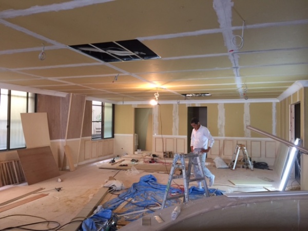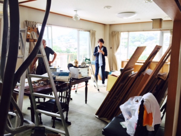 コンクリート三階建ての、住まいをワンフロアーごとに米軍対象のレンタルハウスに改装します。三人の大工がワンフロアーごとに入り、解体中です。オーナーご夫妻と、電気工事店の社長と打ち合わせ後、変更契約を終え、平田と現場をじっくり見ました。設備品や、キャビネットなどの承認図を早めに現場に送り込みます。輸入品はほぼ手配済みです。活気ある現場はいい出来栄えになります。知恵を絞り、話し合い、イメージを上回る、空間を作るため、動きます。全フロアーのパースが教科書です。リニューアルは現場でのひらめきとカンとそして決断です。