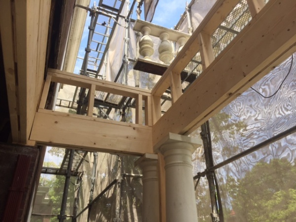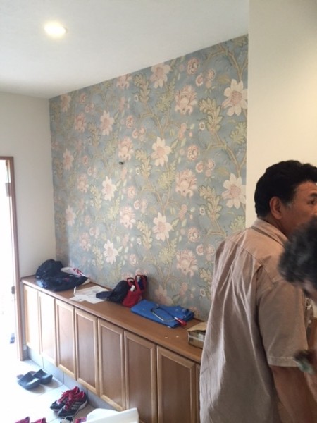施工中のS邸は細部打ち合わせです。塗装や、デコレーションの打ち合わせでした。決まったクロスの現場での検証は大事な作業です。バルコニーの痛みが激しく作り直しました。窓のモールも付き、シャープな表情になりつつあります。