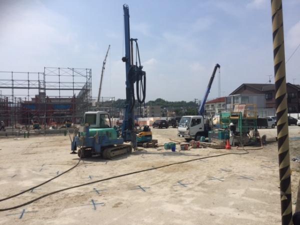 志免町薬局の柱状改良の工事に入りました。開発業者の、はっきりしない対応で、ここ数日大変でしたが、主導権を持って、スタートしました。開発事業は全体を管理、決断する人が必要です。動き回り調整し、全体がうまくいくことが大事です。「わからん。」「適当に話してやってください。」など責任感がない受け答えには、怒りを感じます。ほかの業者さんも、同様の感想をお持ちのようで、みんなでの話し合いを要求し、今後協力し合うことを確認しました。17日に、柱状改良を終え、20日21日からから基礎工事です。雨の季節です。工程に余裕をもって事に当たります。筑後M邸の敷地実測と、地耐力調査を行いました。久しぶりに、いまどき、平板での実測をしました。アナログです。ご夫婦もお見えになり、飲み物などふるまっていただきながらの調査でした。水路の横にしては思いのほか深くなく、やや安心しました。来月末には着工できるように、打ち合わせ、ローン手続き、輸入部材発注、確認申請など進めていきます。