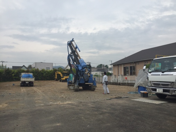 Y邸は解体,整地が終わり、今日から基礎補強と聞いて早朝でかけました。今回は柱状改良ではなく、ピュアパイル工法で約十メートル130本程度打つようです。レベルなどチェックし、打ち合わせ後、オーナーにご挨拶して帰りました。工務店に聞くと10日ほどで杭が終わり、連休明け基礎にかかるようです。昔は、「べた基礎にしとけば余よかろう。」。という会話が飛び交っていましたが今ではデータに基づき,費用もかけてきちんと対処します。保障もいただきます。ハードの上に、デザインは生きてきます。最善の方法でどの工程も進んでいきます。