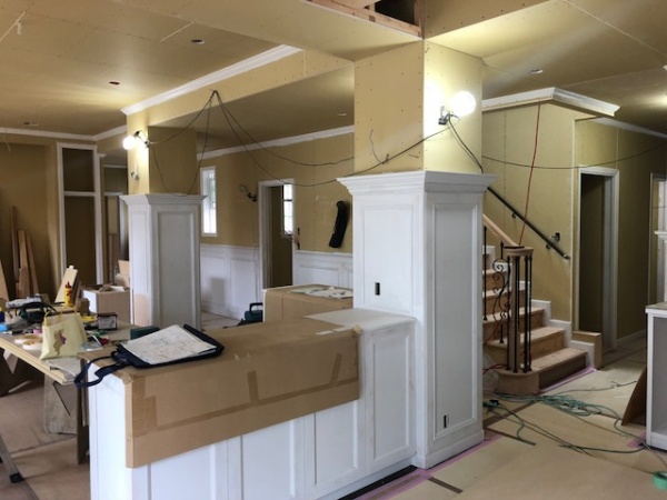 K邸にいってきました。棟梁,左官、塗装屋、設備屋,電気屋・・・・遠方で、月2度の現場打ち合わせのため、質問攻めです。みんな工事が進み、暑いのに、顔が明るいのはいいものに仕上がりつつあることを感じられるからです。上棟当初はよく怒り、怒鳴り注意しましたが今は笑顔で前向きな話ばかりです。。解体した母屋の、長押、違い棚、欄間、屏風などをうまく生かしての玄関ホール、和室のデザインは私にとってもいい経験です。雪見障子のデザインを送る約束をしました。オーナーもわざわざ仕事の合間に来てくださいました。いつも歓待いただけることに感謝です。「遠方お疲れ様です。お任せします。よろしくお願いします。」という言葉に力をいただけます。
