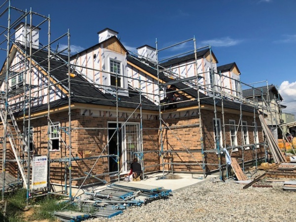 暑さの中の現場では、エアコンがついたプレハブの現場小屋がオアシスです。クリニックの外壁が張られ素敵です。薬局では薬品棚と、カウンターの打ち合わせが業者と工務店とオーナーとで行われていました。午前中に先生と打ち合わせたことを監督に伝え、オーナーからいただいたつめたい飲み物を飲みながら出来栄え談義です。現場を覗いて帰りました。住宅では現場小屋があることはめったにありません。昔は電話とファックスを置くため小屋が必要でしたが、アイフォンやタブレット、車があればすべてことは足ります。そのため会話や、打ち合わせが少なくなり、ニュアンスが伝えられず、現場が勉強の場ではなくなりつつあります。