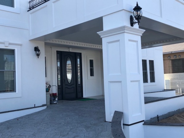 南区A邸のエクステリアで、スタンプコンクリート、アイアンフェンス、門扉などそれぞれ分離で、短い期間で作る必要があります。外構屋に頼んでも、この短期間の条件ならこだわったものができません。予算もオーバーします。いろんな人の協力で何とか請けてもらえました。昔からのこだわる仲間たちです。いい物を作る人たちが徹夜してでもといってくれました。「予算内でやります。その代わり条件はいいものを作らせてください。」とのことです。「間に合うために規格品とか既製品でいいと思われるのならやりません。」いいねー。時代遅れで儲けることが下手な連中ですが物づくりが好きでプライドは高いやつらです。しゃべりは下手ですが、自分がやった作品の写真を抱えて、熱くオーナーに語ります。「おまかせします。」といってくれたオーナーもこれまた男前です。