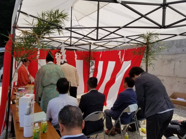 先日に続きL&Sの地鎮祭でした。以前にも増して勢いがあります。あやかりたいものです。今回も海辺の風光明媚な敷地に3棟建ちます。がんばります。前回に続き、おいしい、おはぎをいただきました。ホテルの料理長にお願いしたものと聞いてましたが、さすがうまい。帰りの車で開けていただきました。太るはずです。奥さまからわれわれが玉ぐしを供えている写真がメールで送られてきました。仕事をいただいた側にもいつも心遣いいただき、ありがたいと思います。見習うことばかりです。