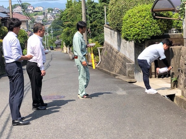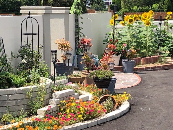 宗像T邸の解体が始まるので、お清めをしました。酒、塩、米を用意してオーナーとわれわれだけ行いました。奥様はお仕事が入り、参加できなかったのですが古屋つきの土地購入のため、更地にします。その後、水巻K医院にうかがい、駐車場の車止めのメンテ、それと医院2階の計測、新しいご依頼の打ち合わせを行いました。新しい花壇には花が咲き誇り、立派なひまわりが印象的でした。コーディネーターは北九州U邸の現場打ち合わせが早朝から夕方まででした。