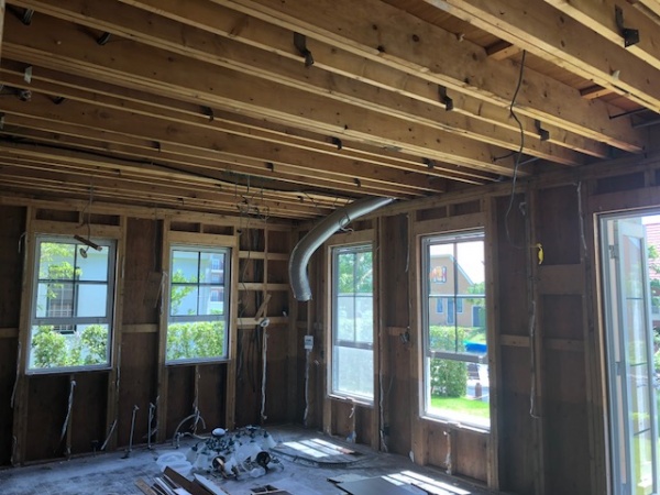 宗像T邸の解体がそろそろ終わりです。すぐに地耐力の調査を一箇所残しているところをやって、柱状改良に入ります。段取りよく進めることがその後の工程にも好影響を与えます。ブロック塀や植栽、物置、ガレージ屋根など、本体以外の解体も多く、外構のデザインを考えながらの指示が現地で必要です。ワッセナーのO邸大規模リニューアル工事の内部解体ももうすぐ終わりです。電気打ち合わせなどは現地で行い、輸入部材もあと少しです。迷う後は決めるしかありませんから、進めます。やっと涼しくなってきました。どちらも完成のころは初冬です。差し入れの飲み物が温かくなり始めます。明日は先日お会いした川棚で、現場調査です。