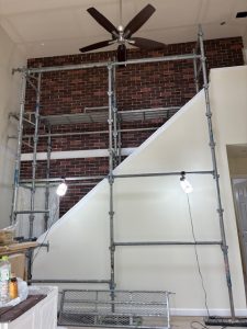 宗像の内装がほぼ終わりです。最期まで迷った、吹き抜けの大壁にレンガタイルを張りかっこよくなりました。クロスも貼り終え、明日はバスルームのシャワーブース設営です。来月竣工検査です。糸島のリニューアルの現場に大阪のエクステリアの社長と行きました。和風の庭を、大きな石やまきの木を撤去して洋の庭に変えるつもりです。立派な庭なので忍びないのですが、芝を張りたいと思います。今まで多くのリニューアルに挑戦しましたが、今回の仕事は今までの経験を活かし、新しい空間にチャレンジします。