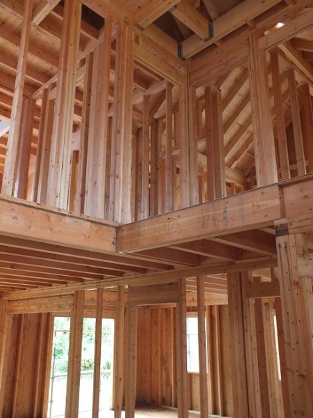 台風が四国上陸の時刻、小月S邸の現場打ち合わせをしました。福岡から北九州までは風も強く、雨、霧でまさに台風でしたが、小月の現場に着くと陽も射し、風もありません。みんな一応に不思議がりながらも、無事オーナーとの顔合わせ、打ち合わせが無事終わりました。これから、屋根工事、サッシ取り付けなど仕上げに入っていきます。それにしても構造はいつ見ても、圧巻です。木材の量、大空間、無駄のない空間利用・・・・・。ツーバイフォーの特徴を全て取り入れた家だと思います。外観デザインのプロポーションもバランスが良く、仕上げや色を間違わなければ素敵なアメリカンハウスになること間違いなしです。楽しみです。先日も書きましたが、オーナーの「皆さんにお任せします。」という信頼の言葉にうれしさと責任感を感じ、気持ちよく福岡に帰りました。